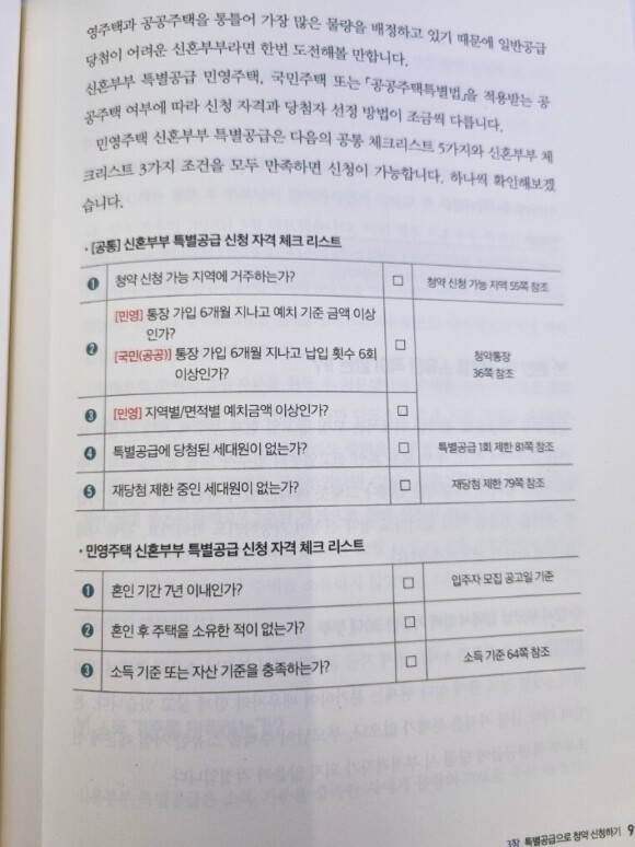 신혼부부 특별공급 신청 자격 체크 리스트이다.