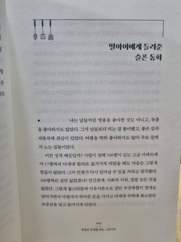 작은 집으로 이사가고 우편물을 쏟아지면서 살던 와중에 아내가 저자한테 더 이상은 이렇게 살 수 없다고 가장으로서 돈을 벌어왔으면 좋겠다는 말을 들었다.