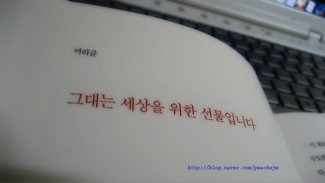 이 책의 머리글,, "그대는 세상을 위한 선물입니다.."