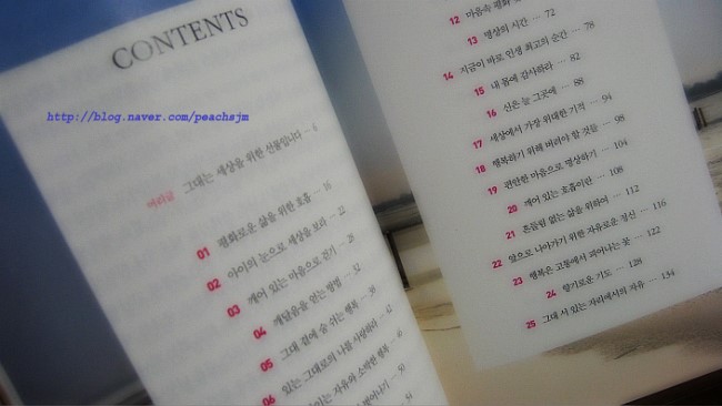 1월첫째주부터 12월 마지막주까지있으니, 1년동안 머리맡에 두고 조용할 때 명상하기 좋은 책이다.