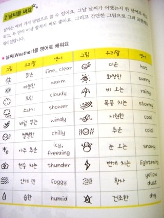 날씨를 표현하는 다양한 단어와 그림이 아이의 눈을 즐겁게 해준다.