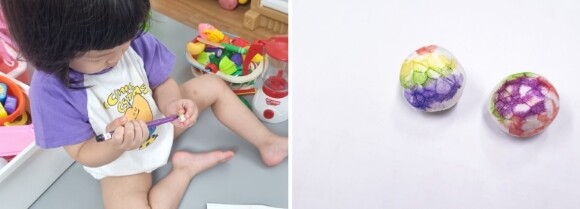 책을 읽고 독후활동으로 스티로폼 공에 꿈 사탕 그리기를 해보았다.