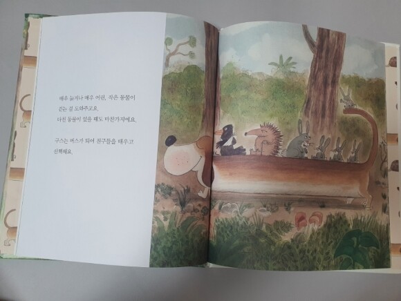 구스와 동물 친구들의 표정이 정말 행복해 보인다.