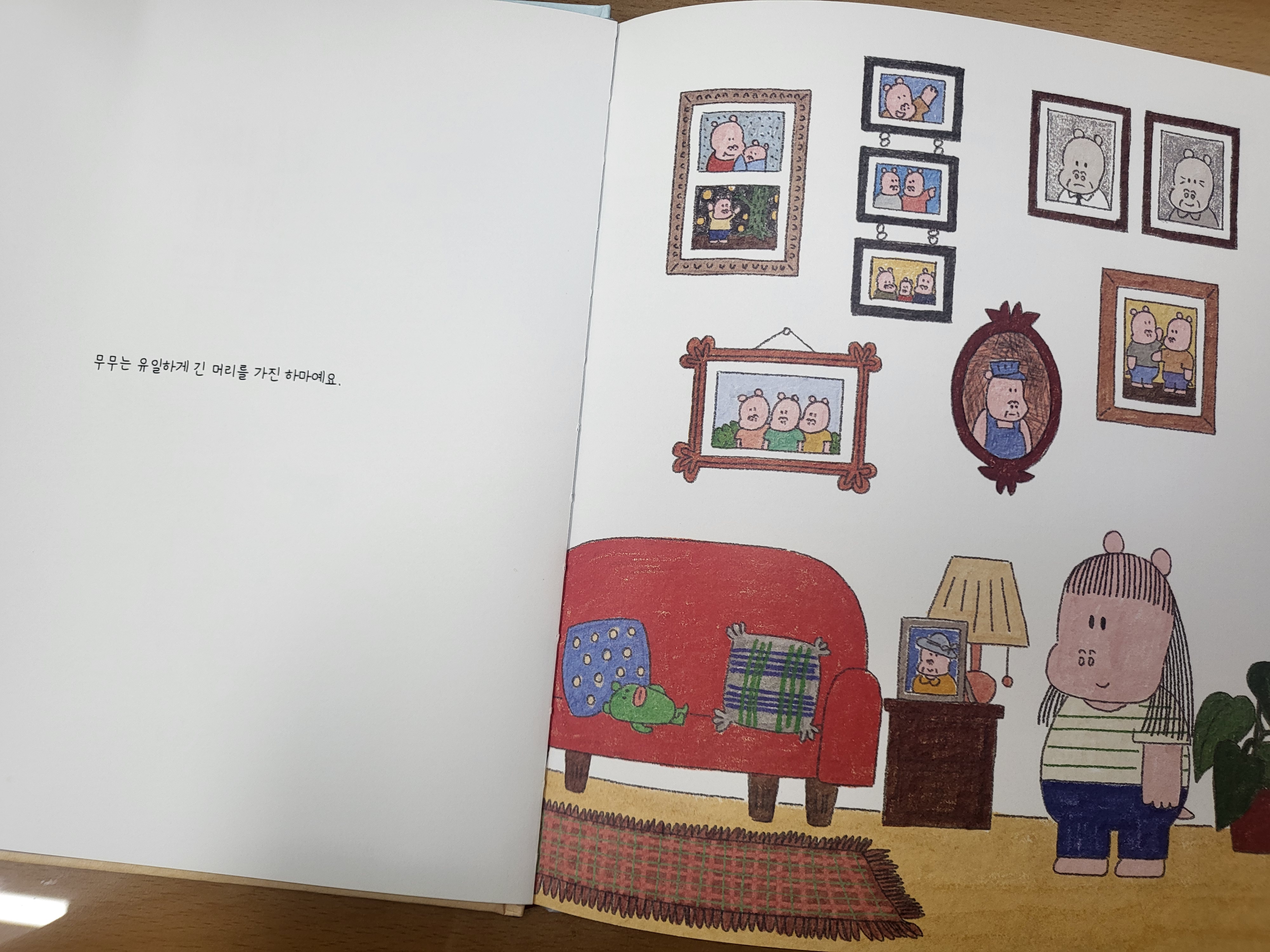 자신을 사랑하는 자존감을 높여주는 그림책 <긴 머리 하나마 무무>를 소개한다.