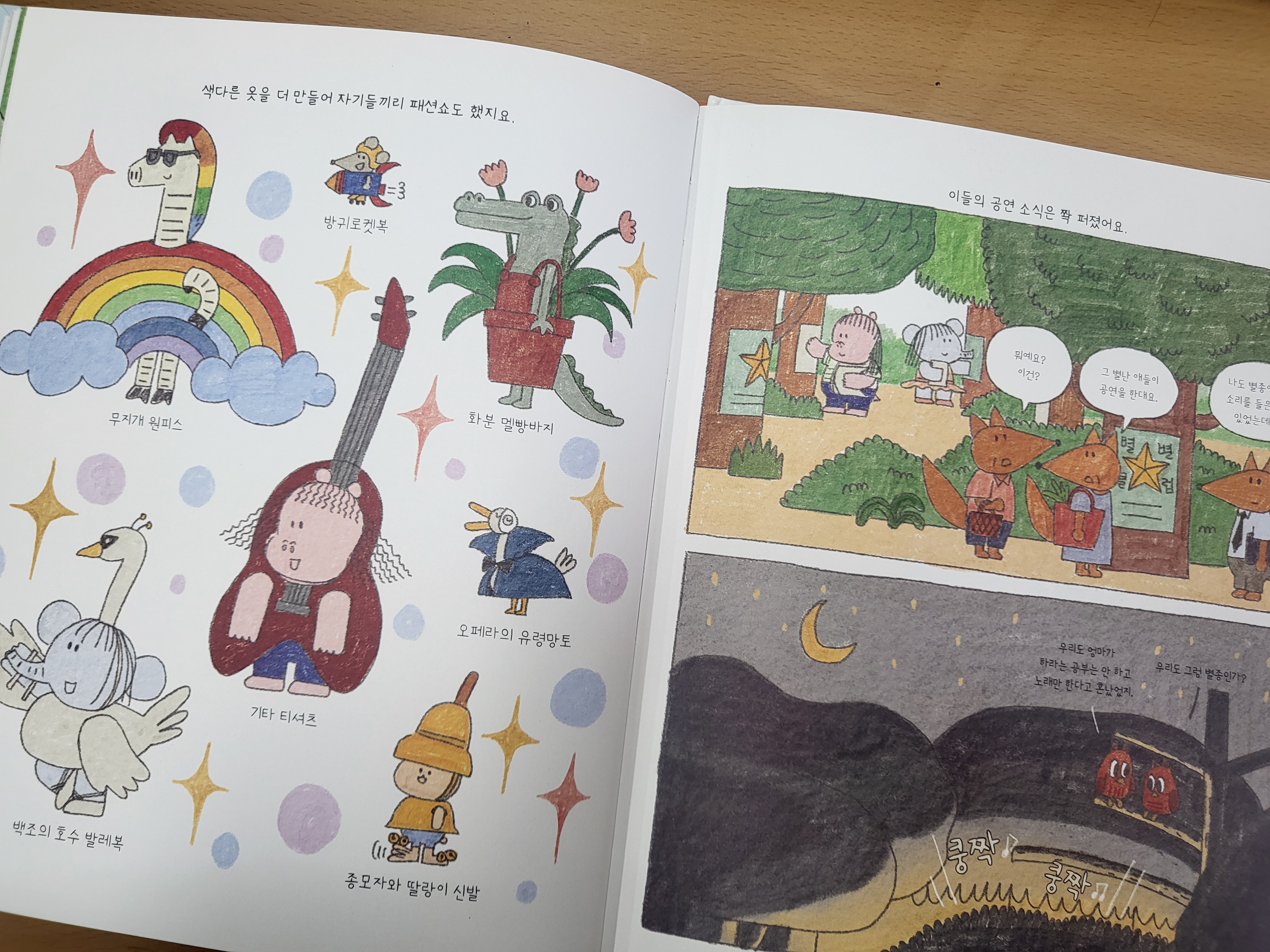외로워진 무무는 숲으로 갔다가 우연히 발레하는 코끼리, 꽥꽥 울지 않는 오리 등 친구들을 만나 별별밴드를 만든다.