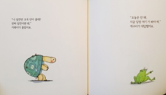 하지만 개구리는 당장 가봐야 할 곳이 있어서 안된대요.