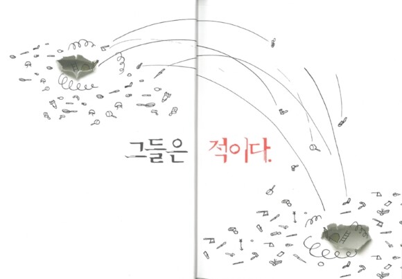 앞, 뒤 표지인데 저렇게 앞 뒤에서 서로를 향해 팔을 벌리고 있답니다.