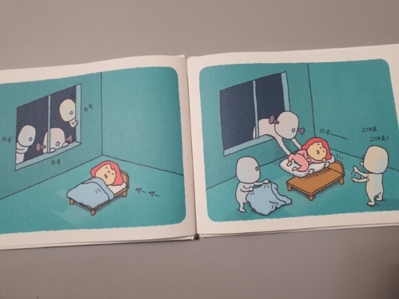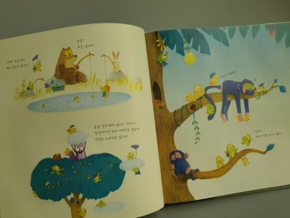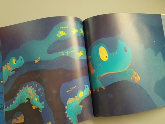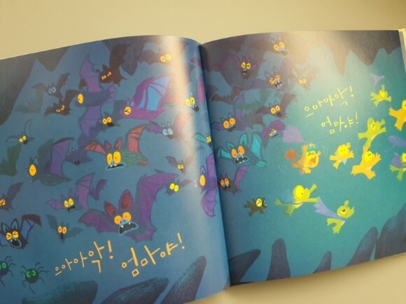 서로 놀라 도망가는 개구리들과 동굴 속 동물들 등 책을 보는 내내 뿜어져 나오는 귀여움에 미소를 한껏 띄우며 봤어요^^.