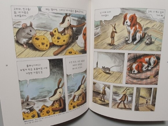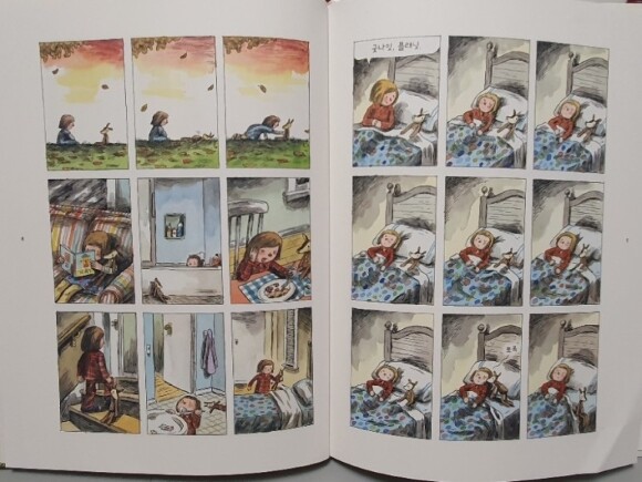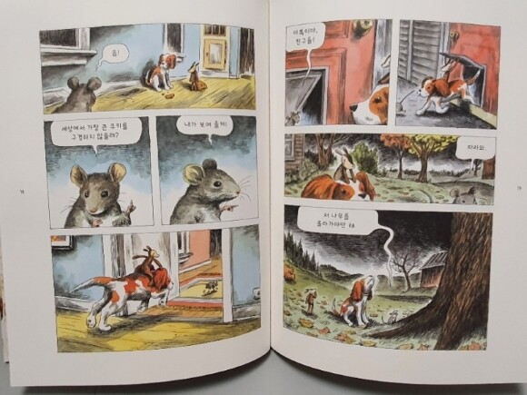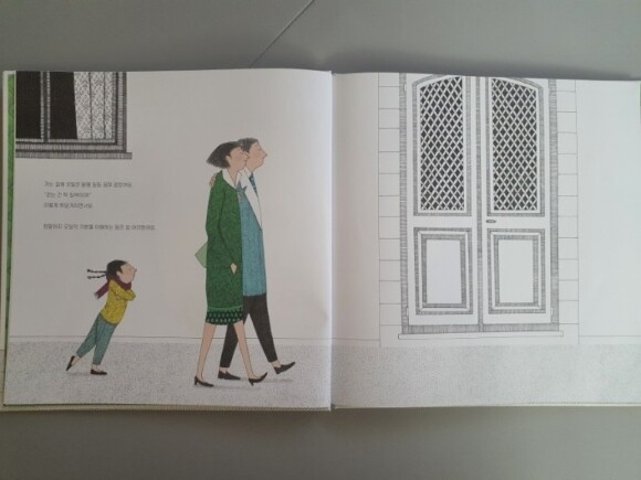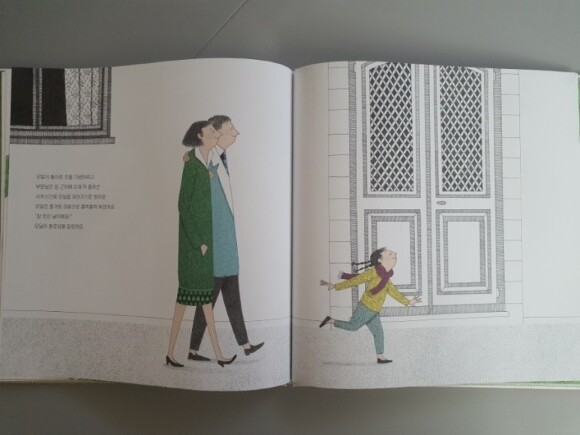 처음 그림에서는 하기 싫은 목도리를 하고, 걷기 싫은데 억지로 가는 바람에 팔짱끼고 흥흥거리던 오딜이었는데, 이제는 신나는 표정으로 앞장 서 가네요^^.