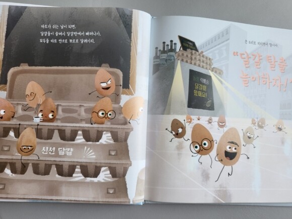 마트가 쉬는 날이면, 달걀들은 달걀판에서 빠져나가 모두들 마트에서 신나게 뛰어논다.