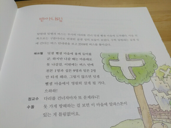학습만화는 아니지만 등장인물 중 누가 이야기를 하는지 대본처럼 쓰여