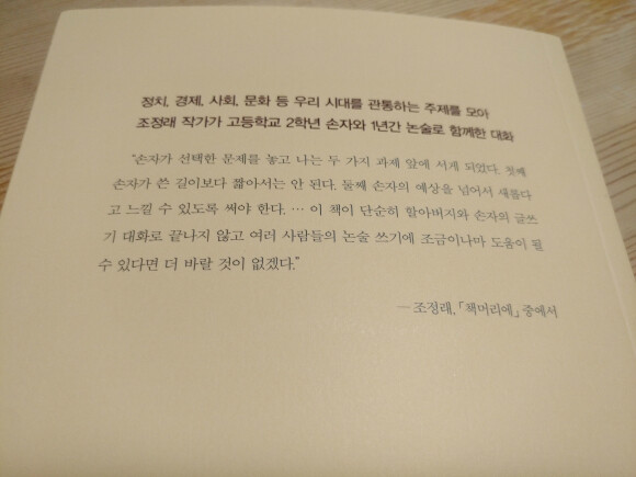 이 책은 같은 주제를 손자와 할아버지가 각각 논술을 하여