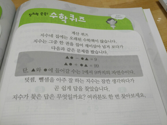 매단원마다는 아니지만 창의력을 이용한 퀴즈가 들어 있어서