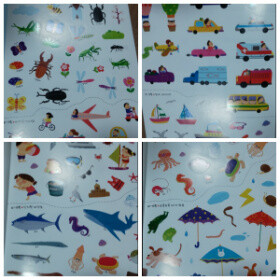 각종 스티커들이 주제별로 모여있습니다. 책장마다 스티커에