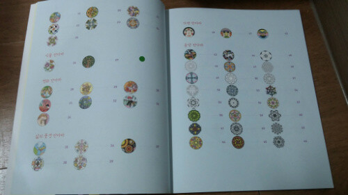 스티커 만다라를 위하여 책의 제일 뒤에 4가지 색상의 원 스티커도 들어있어요.