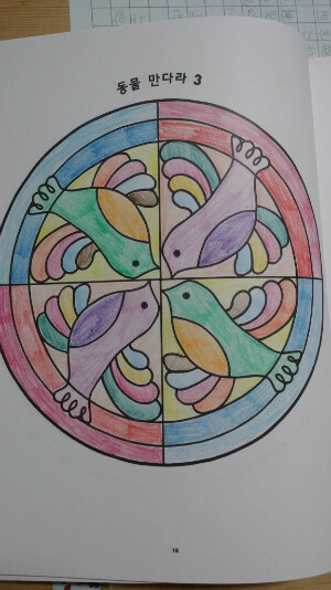 저는 새를 모티브로 한 만다라를 색칠해보았어요.