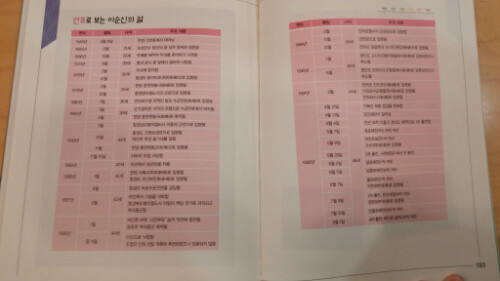 책의 후미에는 이순신의 삶이 연도별로 요약되어 나와있어요.