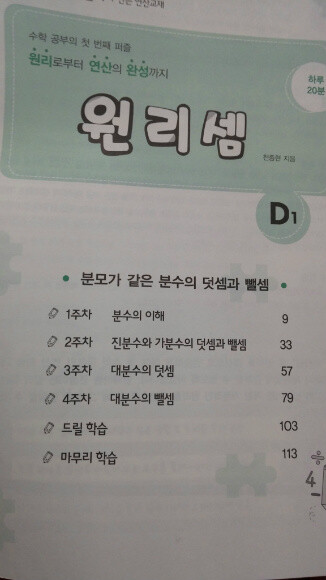 원리셈 D1 - 분모가 같은 분수의 덧셈과 뺄셈, 10.11.12세 ㅣ 원리셈 시리즈