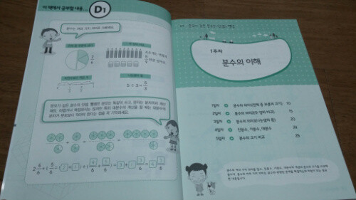 D1단계는 분수의 덧셈과 뺄셈입니다.