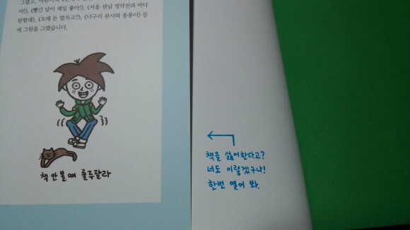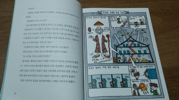 어떤 페이지는 아예 한페이지 전체를 삽화로 재미있게 그려놓았습니다.