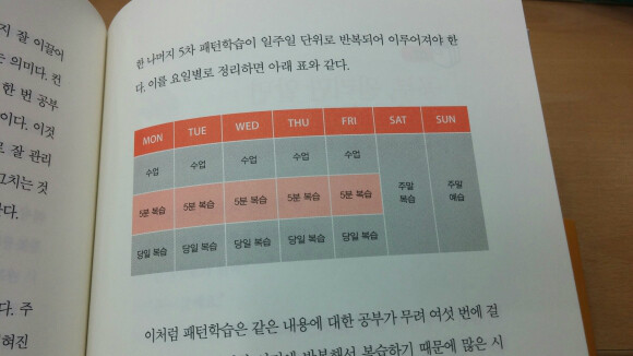 집에 와서 당일복습을 하고 그것을 모아 주말에 다시 복습을 하는 방법이지요.