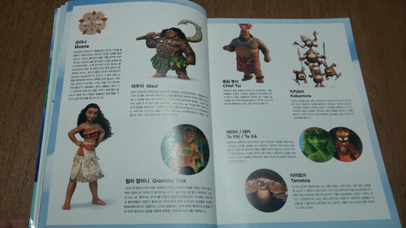 모아나를 비롯한 조연들이 모두 소개되어 있어요,