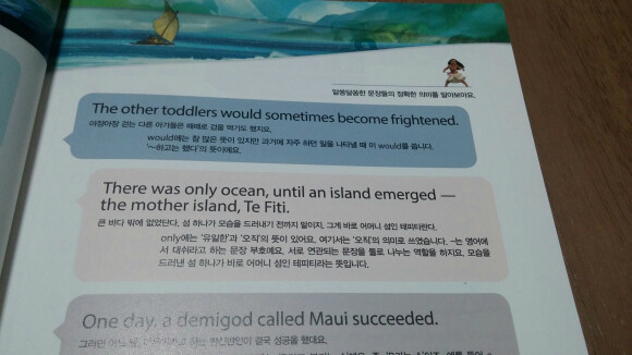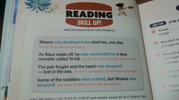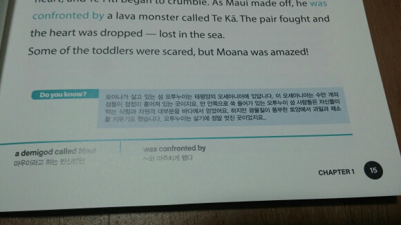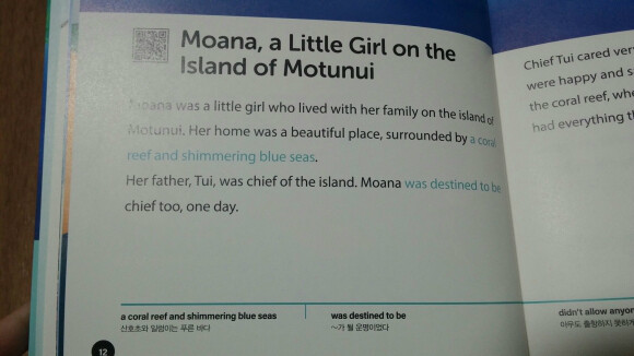 주니어를 위해 책 내용을 좀 더 쉽게 구성해 놓은 영어로 읽는 모아나...