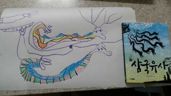 건국신화를 모두 읽고 앞에 용그림을 그려봅니다