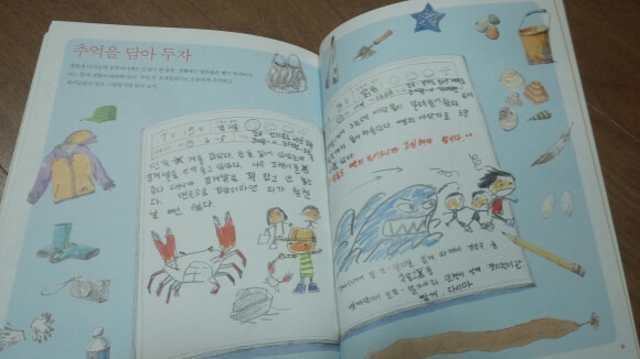 갯벌체험을 하면서 일기를 쓰면서 정리하는 것을 보여줍니다