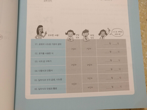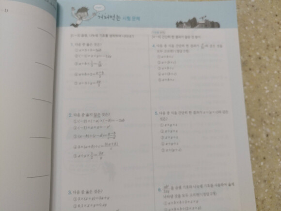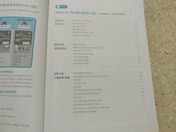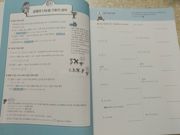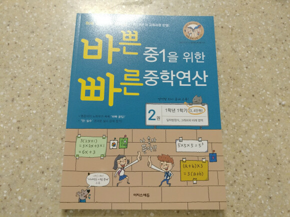 중1 중학연산 중 두번째 권인데 여기에는 문자와 식, 일차방정식,