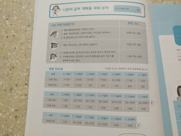 아이의 수준에 맞추어 2가지의 진도표를 넣어놓고 있어서