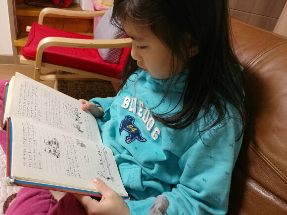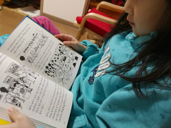 7살 아이가 양이 적지 않은 책을 보고 있다니