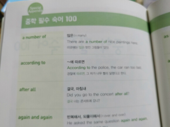 마지막에는 중학교 필수 숙어도 들어있습니다