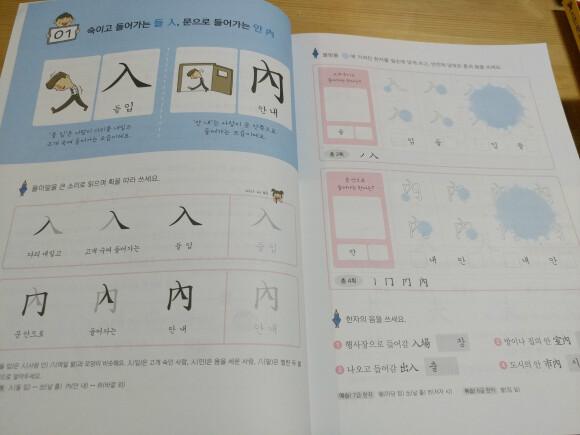 1일차에 구성이 한자에 대한 설명과 쓰기