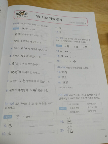 7급 1권에 들어있는 한자는 확실히 8급보다는 수준이 높은 것