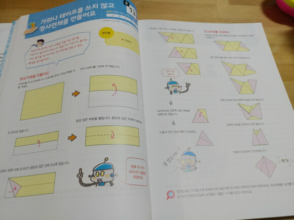 위사진처럼 종이접기 활동등의 액티비티를 통해서 개념을 깨우치도록 도와줍니다