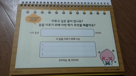스케쥴관리를 할 수 있도록 되어 있어서 아이혼자서 혹은 엄마랑 같이 의논해서 쓰기에 너무 좋습니다.