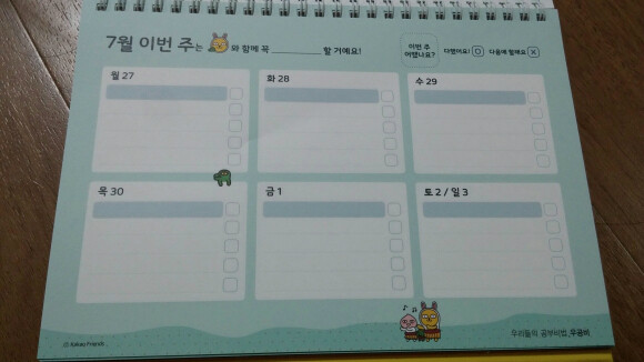한페이지에 일주일이 적혀있고 공란에 계획을 써 놓은 뒤 O X를 표시할 수 있지요.