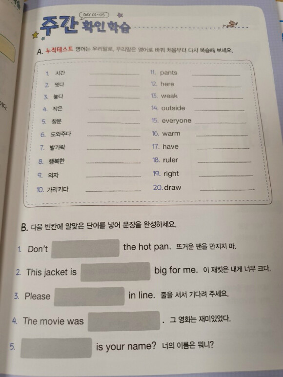초등고학년이나 예비중1은 <기적의 영단어 쓰기노트>로 이번 방학에 1권부터 차근차근 하면