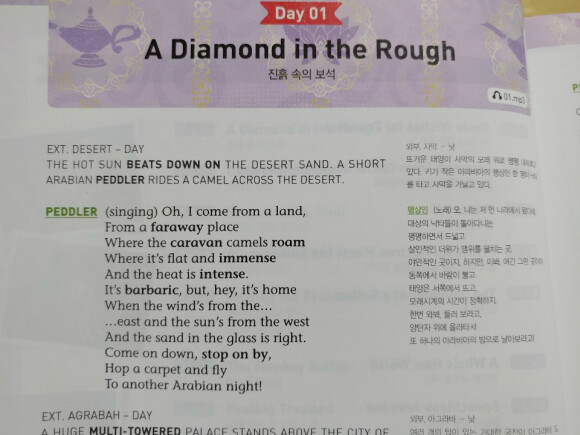 저는 영화를 보기전에 먼저 <30장면으로 끝내는 스크린 영어회화 알라딘>부터 만나보았습니다