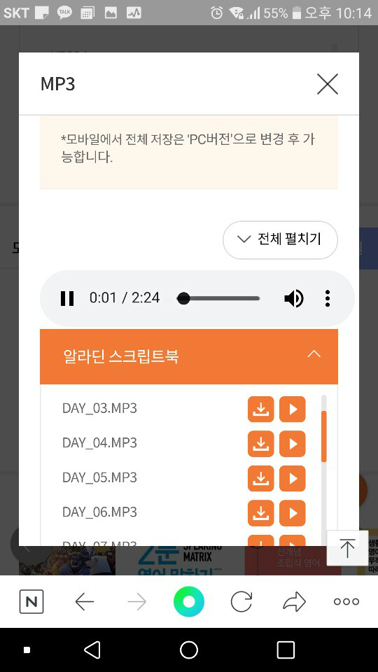 맘만 먹고 매일 한다면 한달에서 한달반정도면 완성할 수 있는 알라딘 스크린 영어회화입니다
