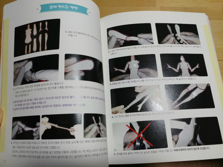 책에는 각 부위별로 만드는 법에 대해서 사진으로 알려줍니다