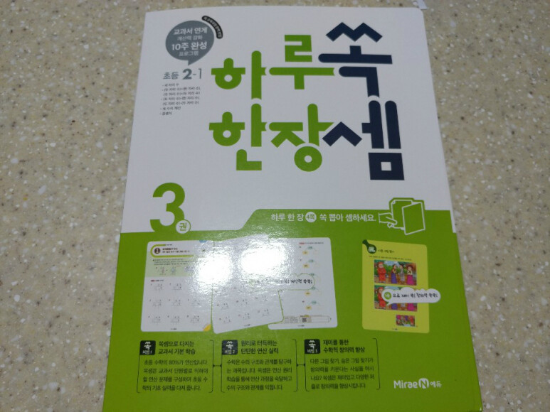 미래엔에서 하루한장시리즈로는 연산문제집인 쏙셈이 가장 먼저 나왔던 걸로 기억해요