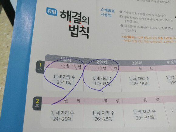 아이한테 하루에 할 분량을 빼어서 이걸 해놓으라고 하면