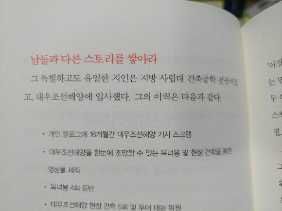 저자가 가장 중요시 강조했던 것은 나만의 스토리를 만들어야한다는 것이었어요