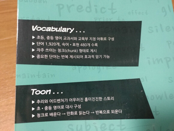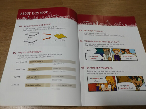 이 교재 안에 들어 있는 단어와 숙어는 중학교 교과서에서 뽑았다고 하네요