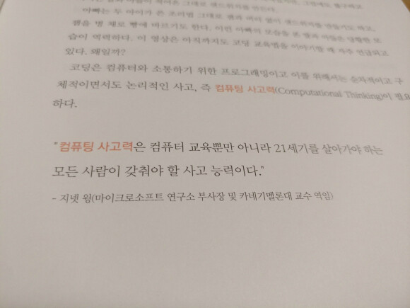 "컴퓨터 사고력은 컴퓨터 교육뿐만 아니라 21세기를 살아가야 하는 모든 사람이 갖춰야 할 사고 능력이다"