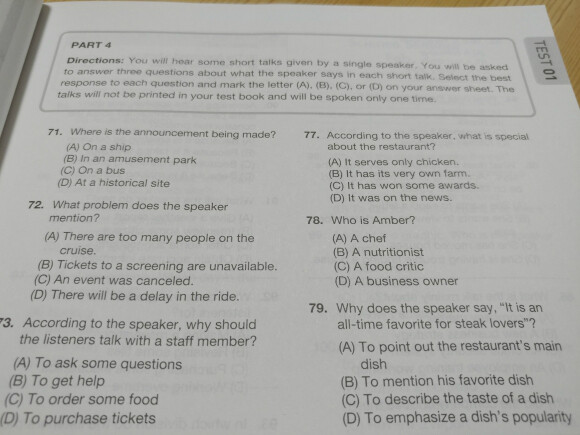 파트3는 조금 더 긴 지문을 듣고 문제를 푸는 파트입니다