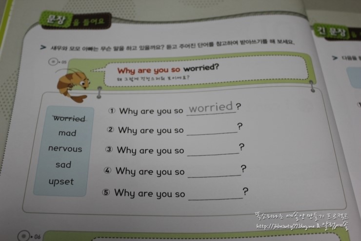 같은 패턴에 단어만 바뀌므로 여러 번 반복해서 듣고 반아쓰기 연습할수 있어서 자연스럽게 익힐수 있다지요