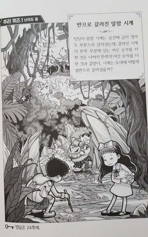 문제를 풀고, 책장에서 답이 적힌 책을 찾아